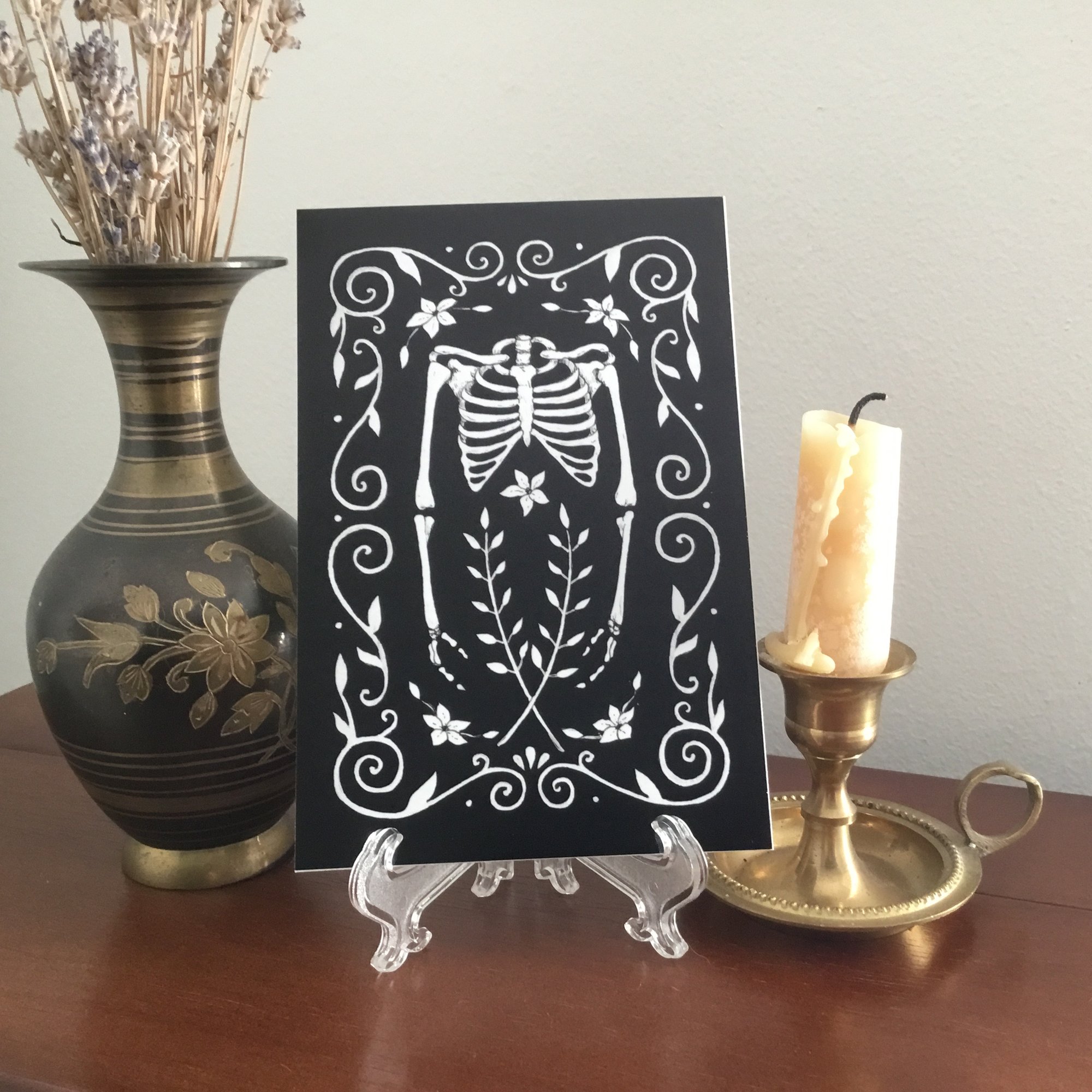 This 4x6 inch print is printed on premium luster photo paper. This paper is has a shine to it but is more scratch and fingerprint resistant than glossy paper. The print is mounted to a board so it is stiff enough to be propped up on a shelf without a frame. I mount the prints to the board myself so the edges are slightly imperfect (there may be some white showing on the edges). The print also looks very nice in a frame. The listing is for the print only. Any frames, props, and curios in the pictures are not included.