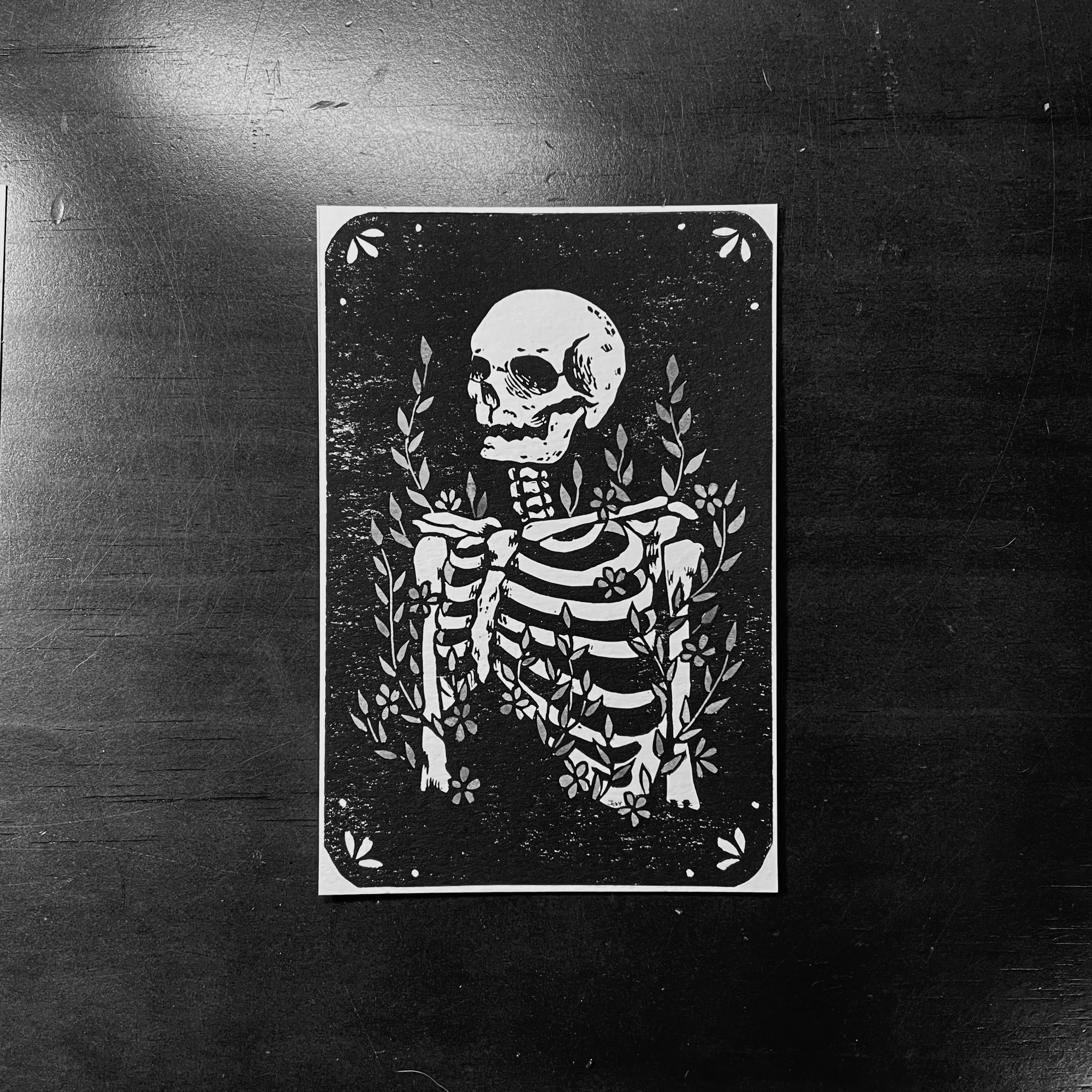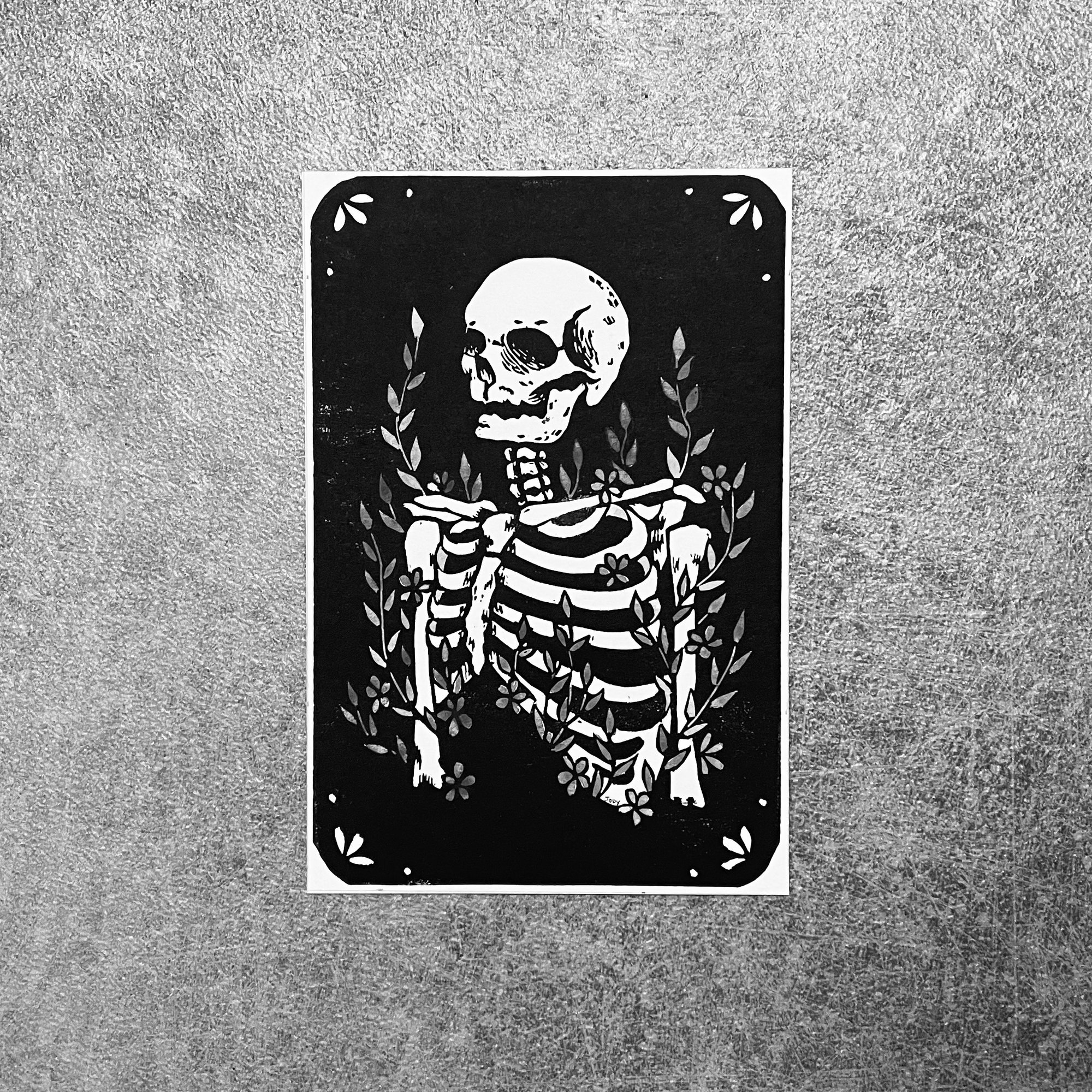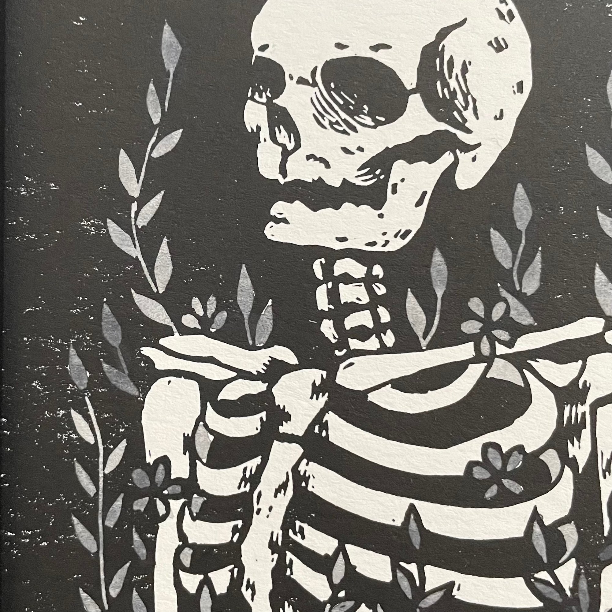 This 4x6 inch linocut print is part of an open series. It is printed with Caligo Safe Wash ink on Strathmore paper with a small press. The plants are tinted grey with watercolor. Because this print is entirely handmade, each one is unique and slightly different.