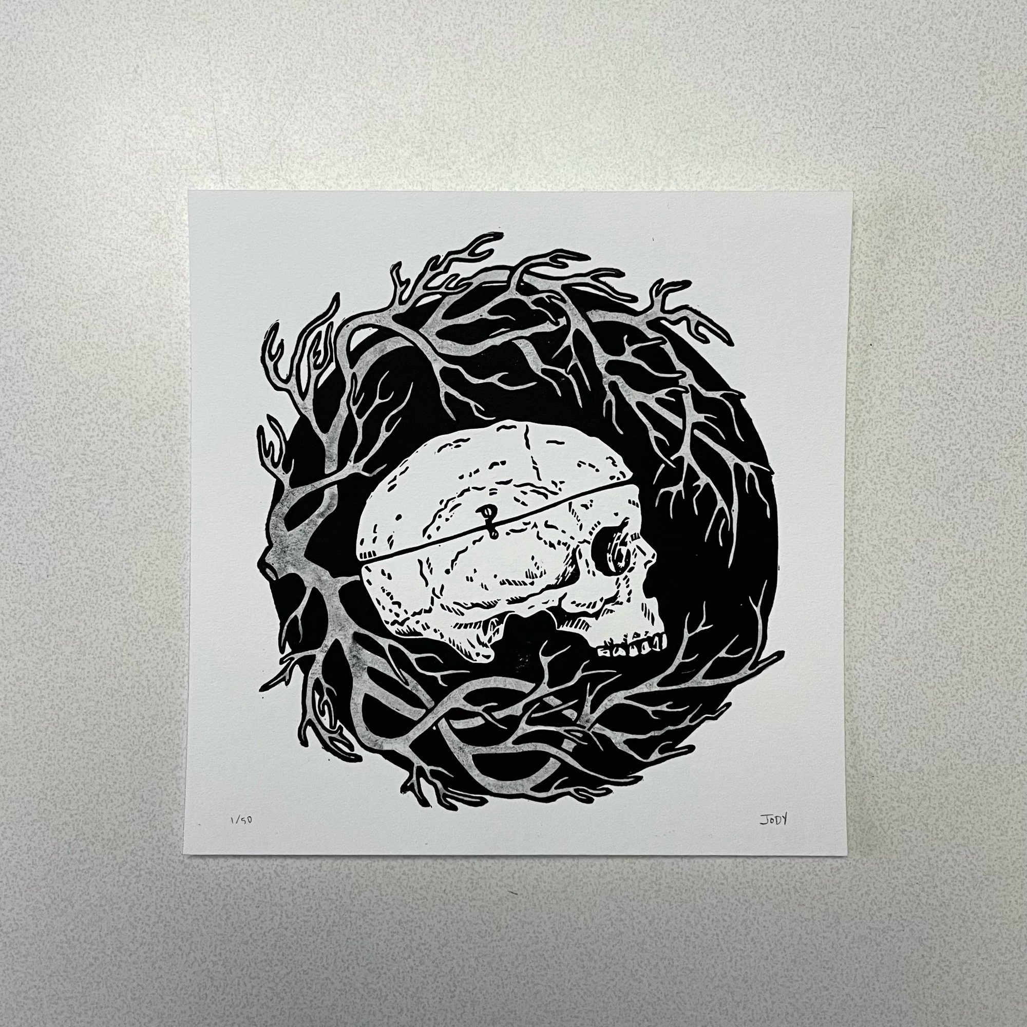 This 6x6 inch linocut print is part of a limited edition of 50. Each print is numbered and signed. Each piece is printed with a small press using Caligo Safe Wash inks on Stonehenge paper. I then added grey watercolor details to each print. Because these prints are entirely handmade, each one is unique and slightly different.